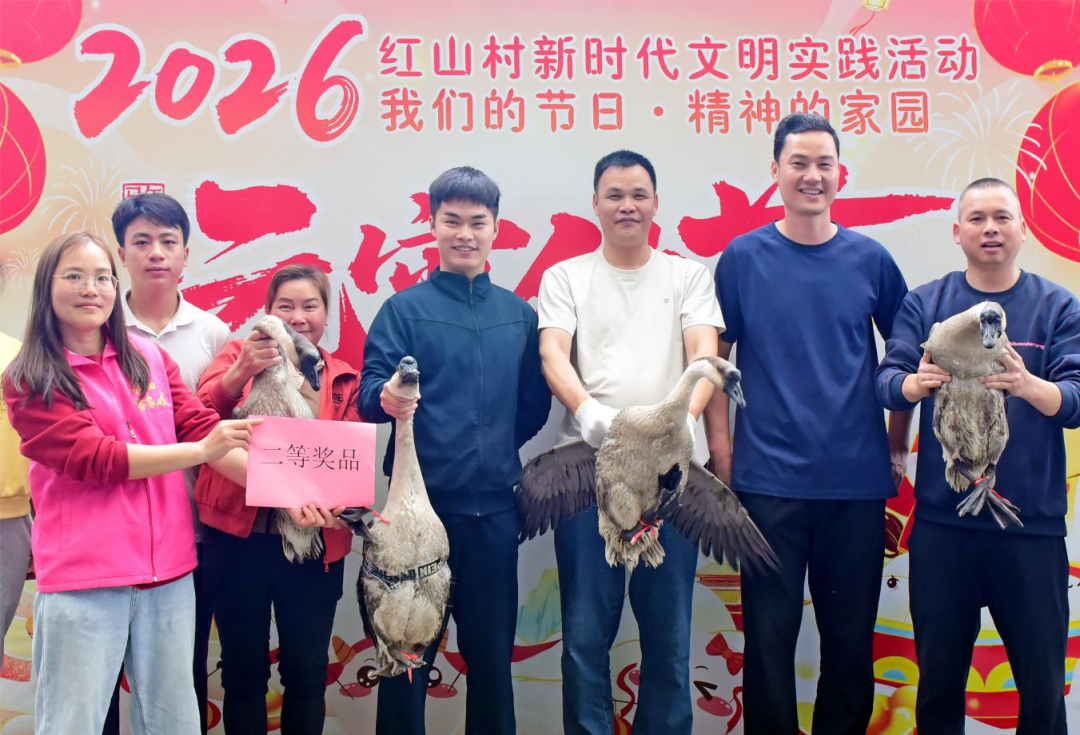 作为重头戏内容,拔河比赛更是将活动推向了高潮。全村各经济社村民组成八支队伍齐上阵,“一等奖生猪一头、二等奖肥鹅四只、三等奖走地鸡四只”——这份“接地气”的奖品清单,让村民们笑得合不拢嘴。