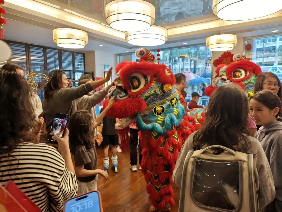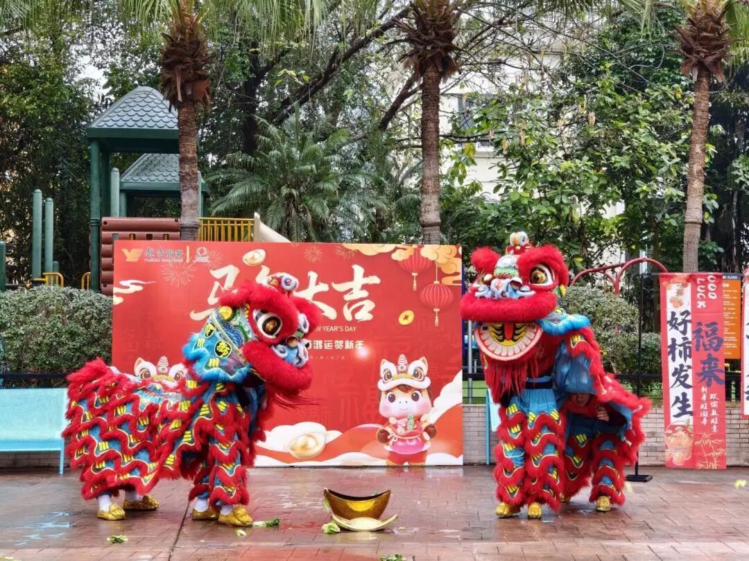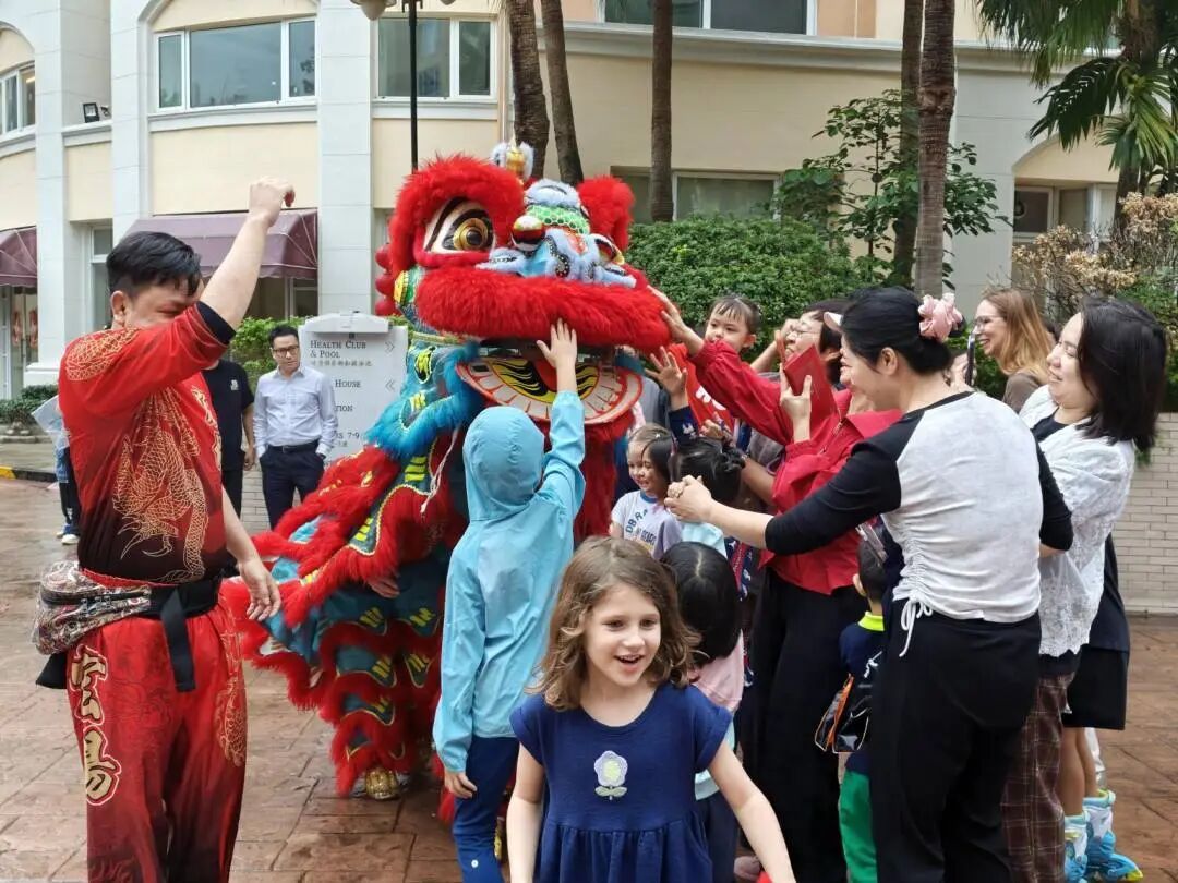 活动在激昂的锣鼓声中拉开帷幕。一场精彩纷呈的舞狮表演瞬间点燃全场热情。矫健的醒狮随着鼓乐节奏腾挪跳跃,时而威武灵动,时而憨态可掬,在舞狮的过程中还向居民们抛出生菜,寓意“生财”,将美好的祝福送给在场的所有人。许多外国友人是第一次近距离观看舞狮,连连赞叹中国传统表演的力与美,也对“舞狮驱邪迎祥”的文化内涵有了直观感受。