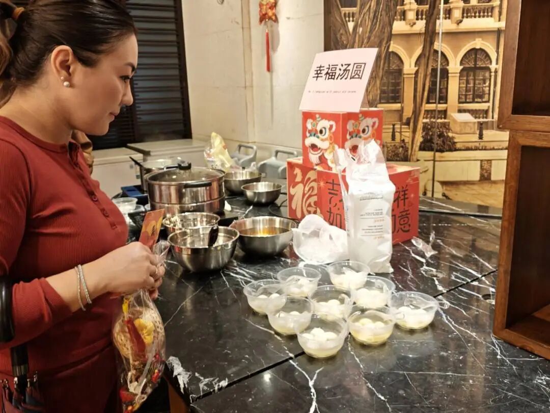 “幸福汤圆”品尝区温暖四溢。一碗碗热腾腾的汤圆被端上桌,大家分享着这份甜蜜,软糯的外皮在口中化开,浓郁的馅料流淌出温暖的滋味。这一刻,“团圆”不再是一个抽象的概念,而是欢聚一起的亲近、分享美食的快乐,以及超越语言与文化差异的温暖共鸣。