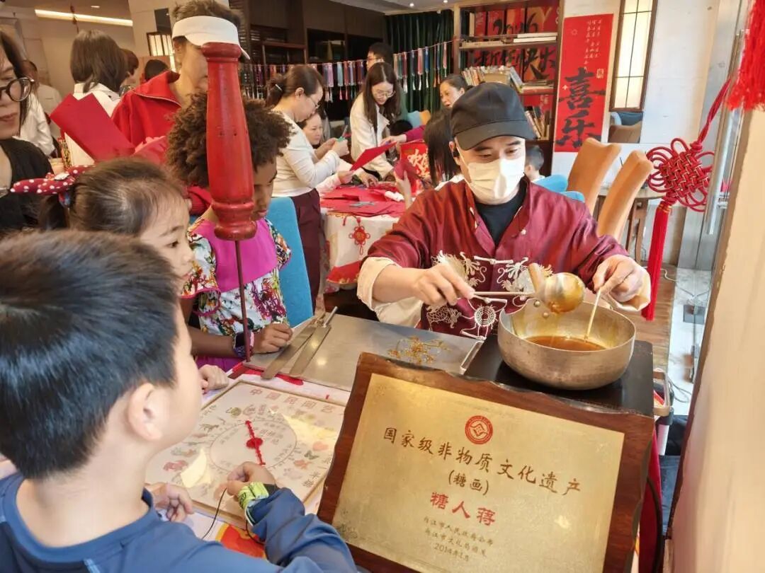 在剪纸区,大小朋友们学习折叠、描画、剪刻,一张张红纸在手中变幻出精美的窗花与“福”字。这两项极具中国特色的手工艺术,以其直观的趣味性和创造性,成为了外国友人体验中国民俗的“第一课”,也让本土居民在传授技艺的过程中,感受到非遗活在当下的生命力。