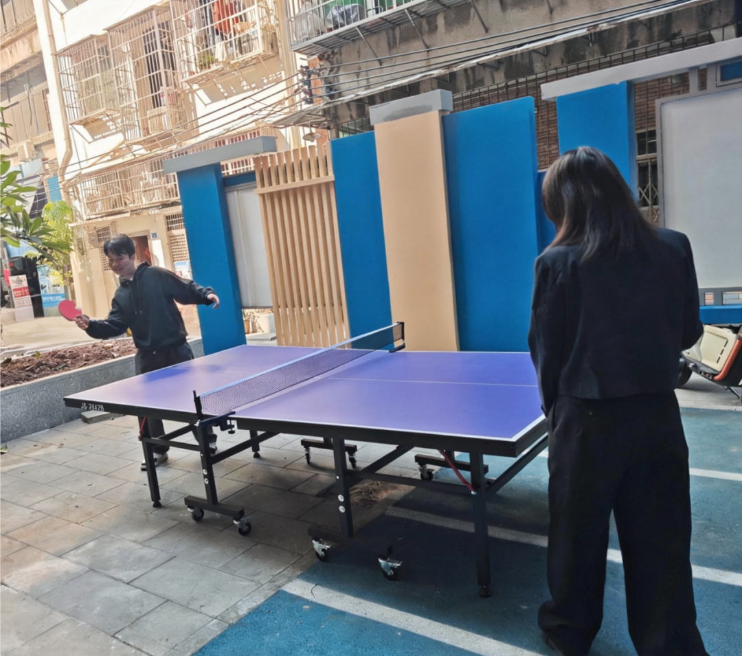 金花街道在社区内精心打造了一处乒乓球运动点,为居民提供便捷的“家门口”健身选择。