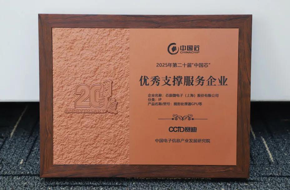 11月14日,2025年“中国芯”集成电路产业促进大会暨第二十届“中国芯”优秀产品征集结果发布仪式在珠海横琴举行,发布年度“中国芯”征集结果。芯原凭借其在IP和芯片设计服务领域的卓越表现,荣获2025年“中国芯”优秀支撑服务IP企业称号,这是芯原第五次获得该项荣誉。芯原接口IP高级总监肖轶代表公司出席颁奖仪式并领取奖项。